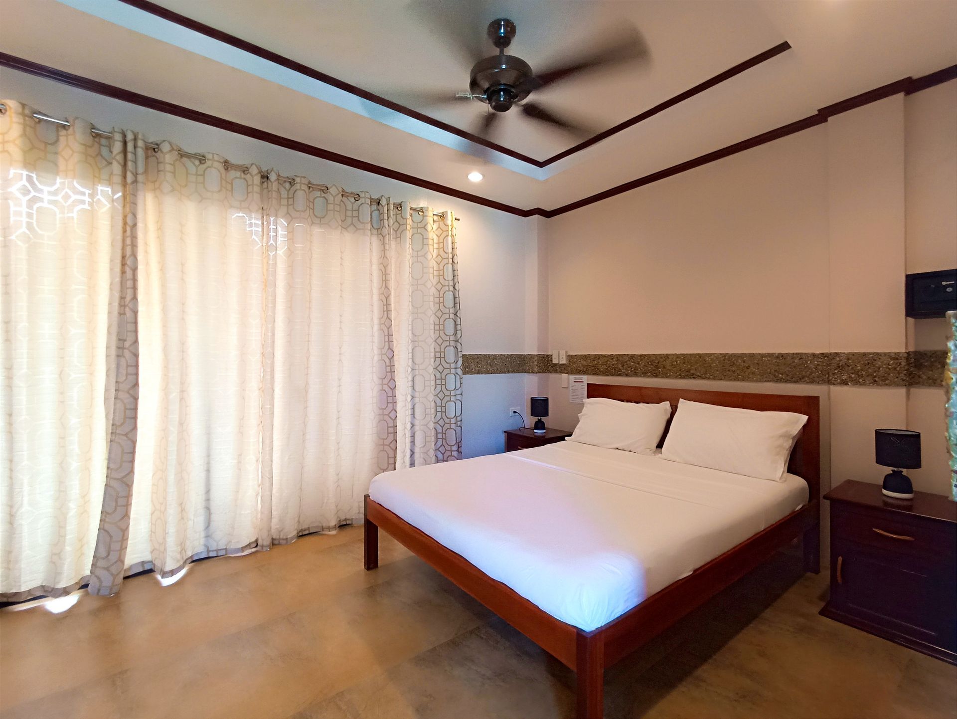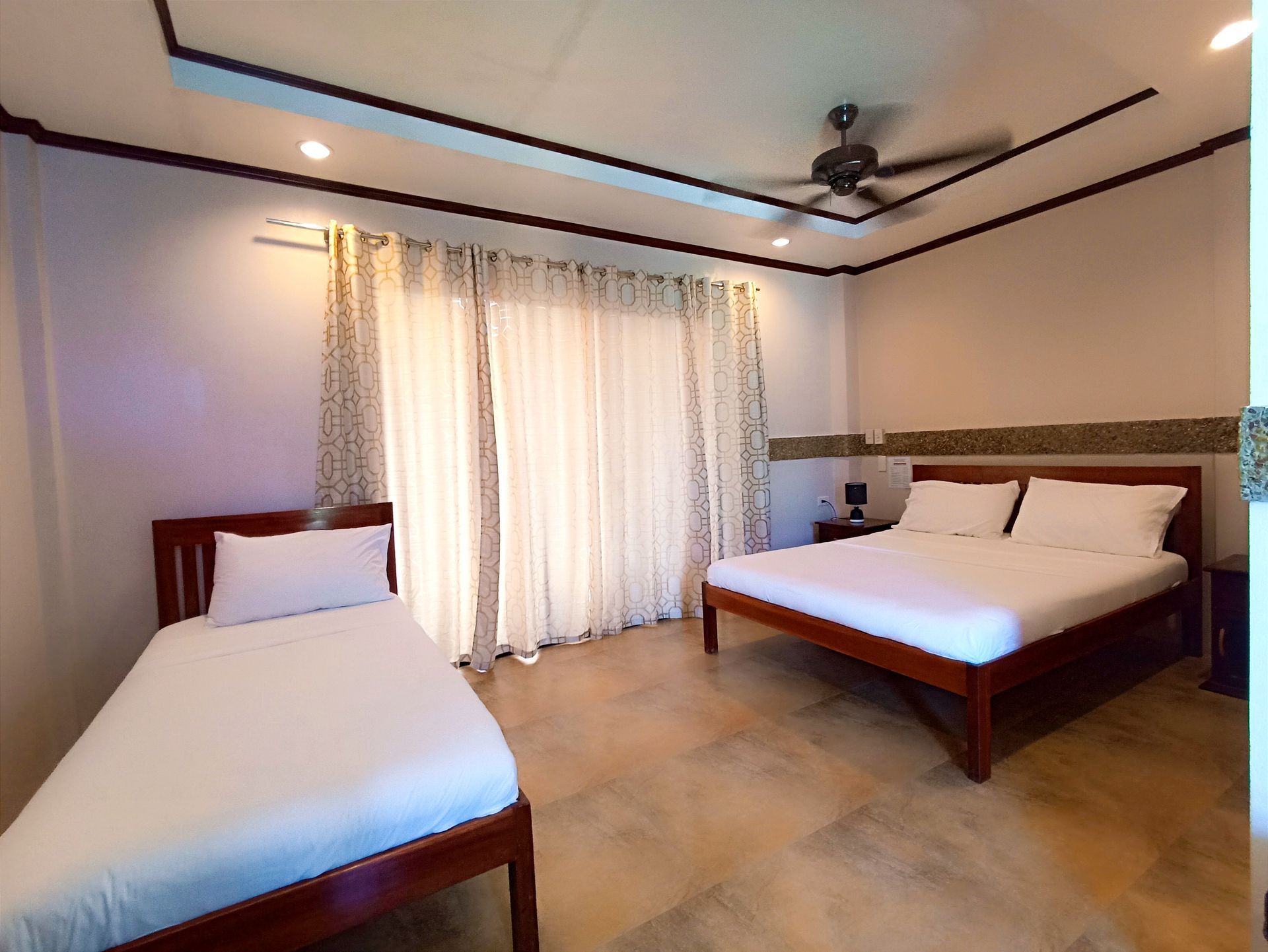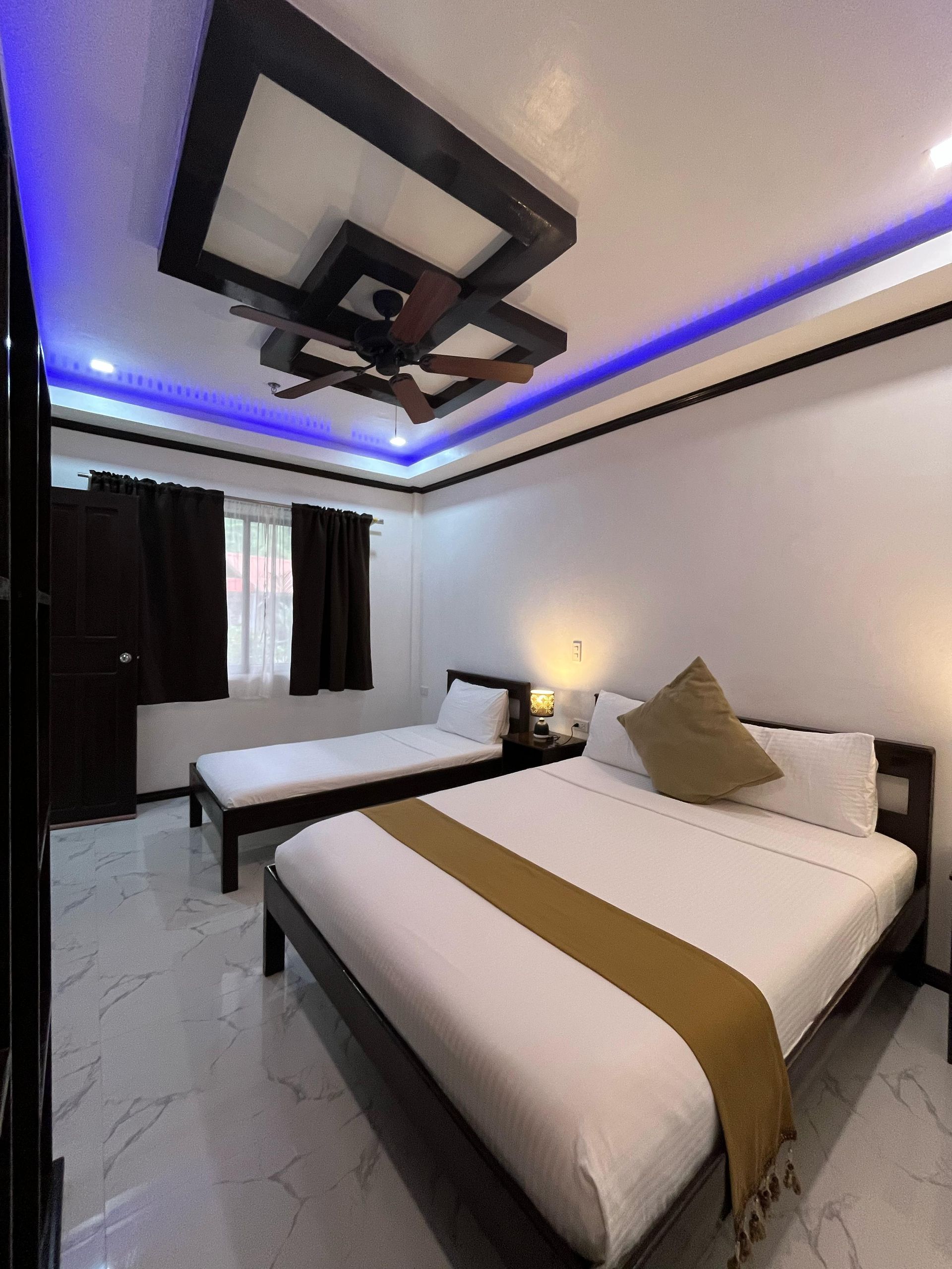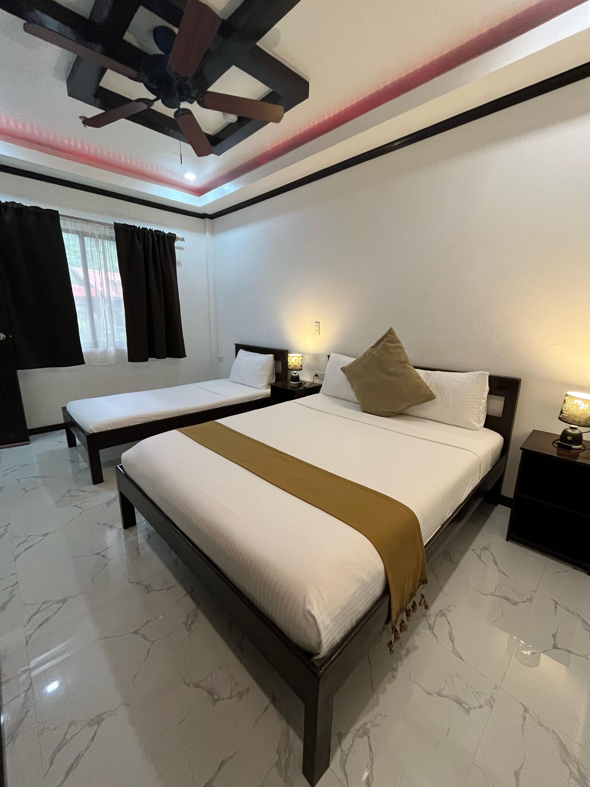 all-purpose room in the hotel designed to be a place where family and guests gather for group recreation like talking, reading, bonding and other family activities and of course for relaxation. It has a laid-back comfy and cozy amenities to make families feel at home and ideally built also for travelers looking for access to more space. We have a total of two (2) Family rooms with an area of 70 m² equipped with private bathroom, hot & cold shower, free-flowing coffee, work desk, air condition, fridge, safety box, Wi-Fi and a balcony a balcony overseeing our well-maintained and aesthetically pleasing garden. The Family Rooms are divided into two (2) sleeping rooms and one (1) living room. We offer complimentary Continental, American or Filipino breakfast, concierge and a personalized room service.