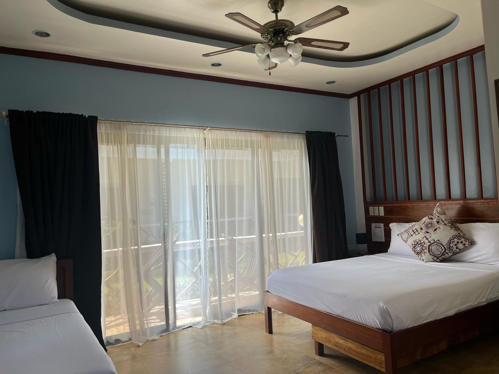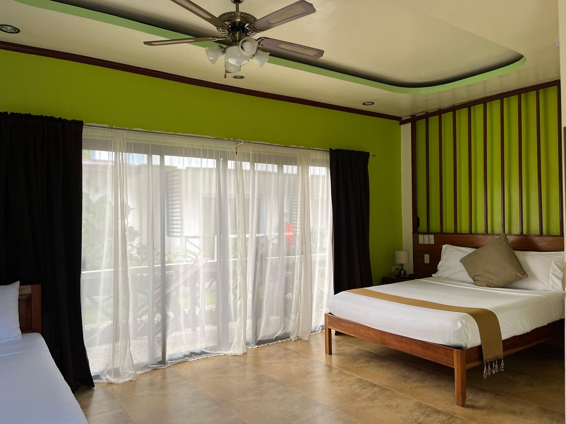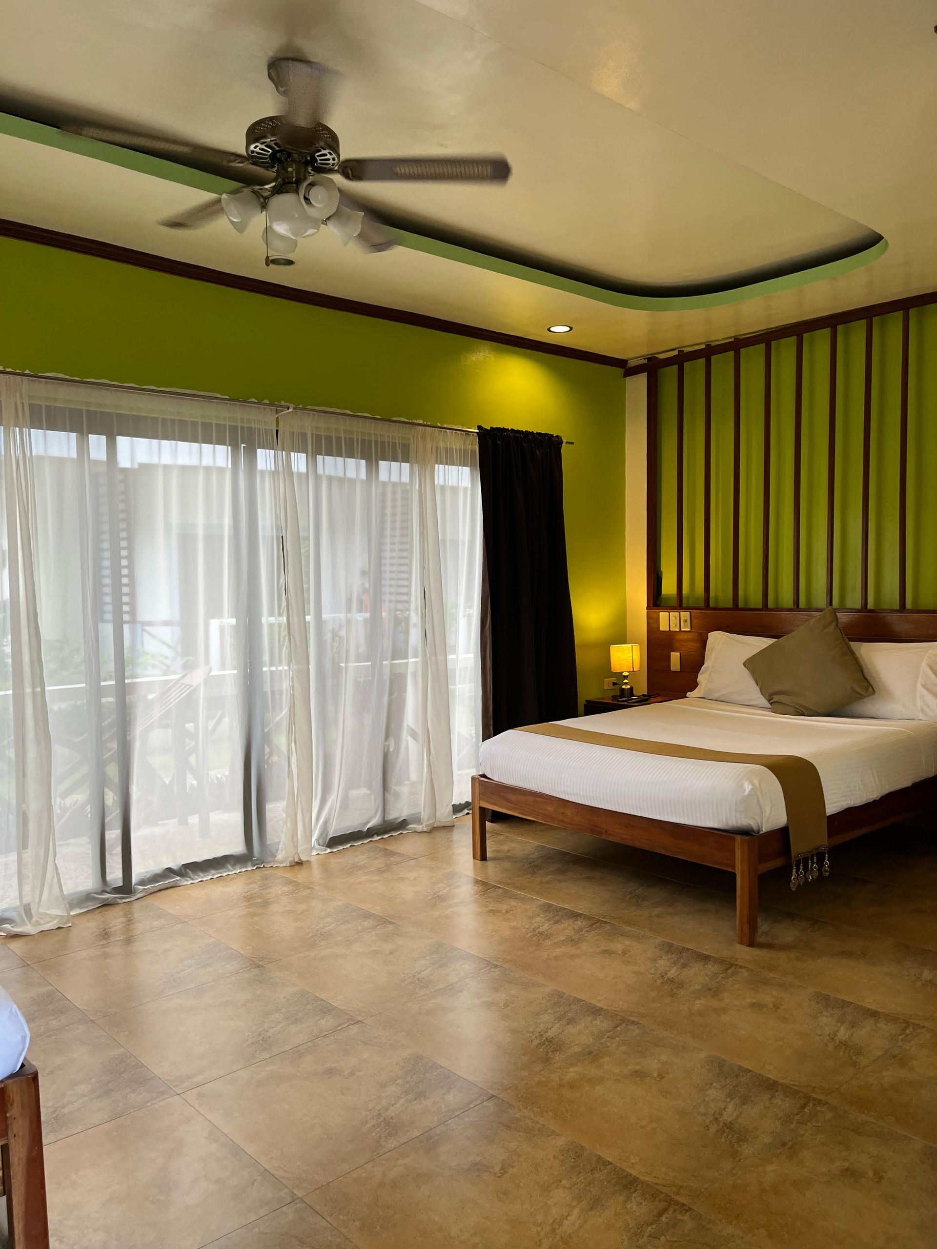signature room for comfortable living at an affordable rate where relaxation and good service are a priority. It provides premium privacy and comfort with an area of 25m². It is spacious enough to have a full-size bed and a normal bed, private bathroom, hot & cold shower, free-flowing coffee, work desk, air condition, fridge, safety box, WiFi and a balcony overseeing our well-maintained and aesthetically pleasing garden. We have a total of five (5) Deluxe rooms in Oasis Port Barton which offers complimentary Continental, American or Filipino breakfast, concierge and personalized room service.