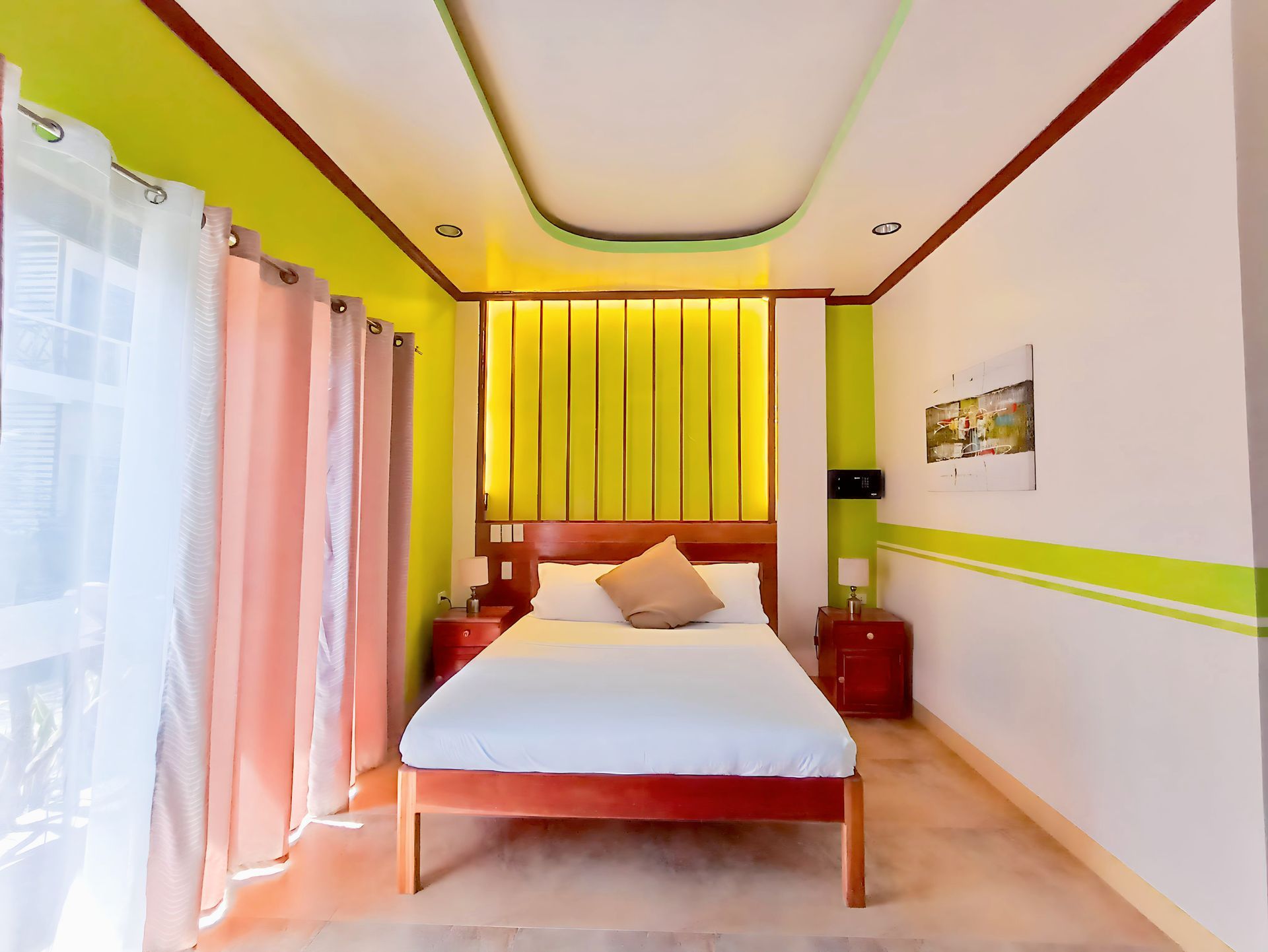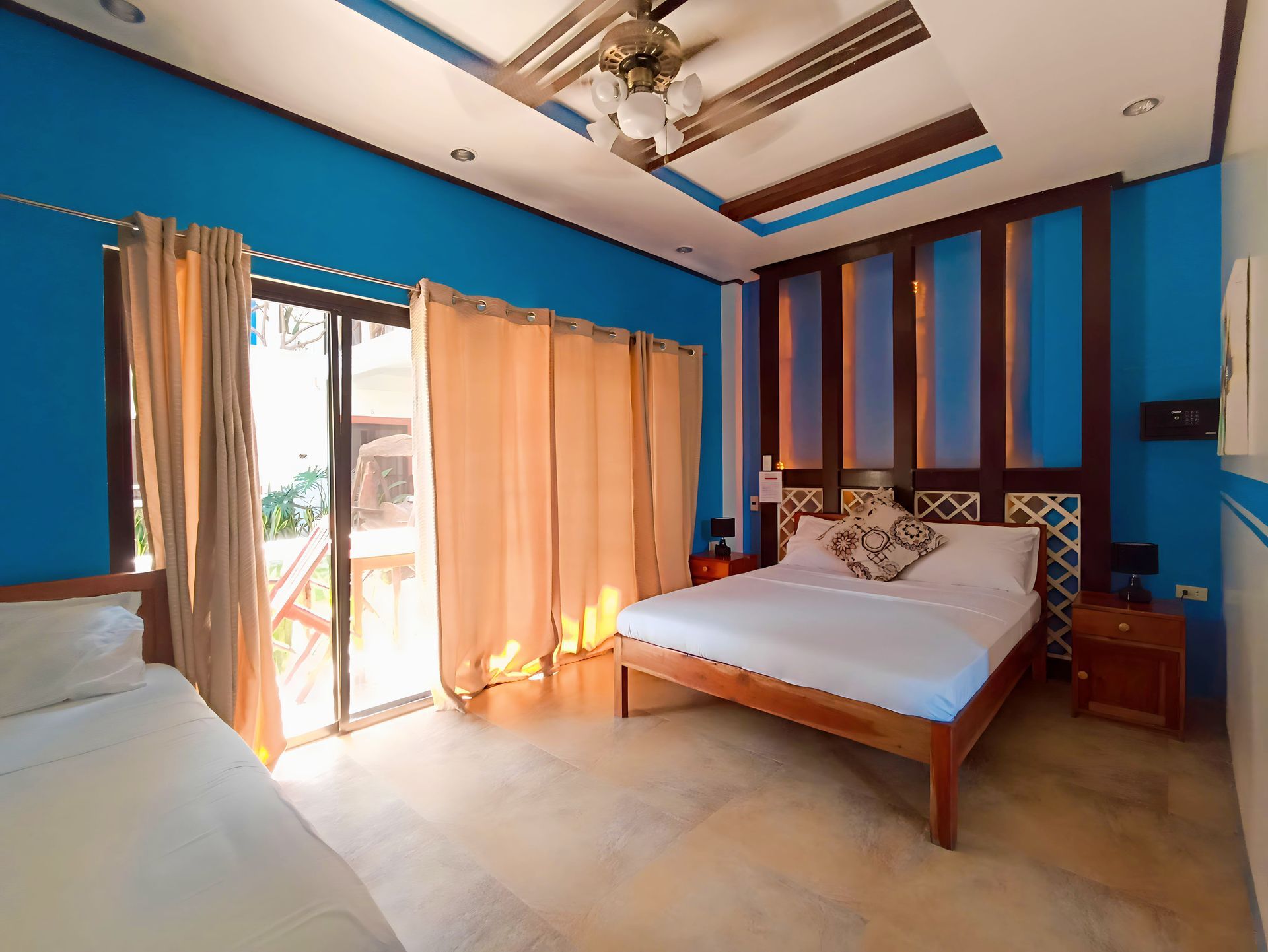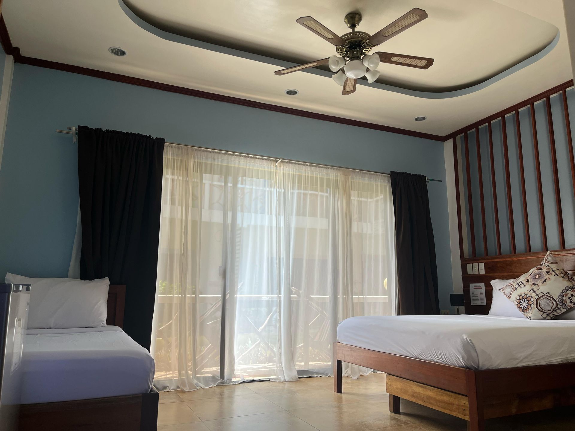 signature room for comfortable living at an affordable rate where relaxation and good service are a priority. It provides premium privacy and comfort with an area of 25m². It is spacious enough to have a full-size bed and a normal bed, private bathroom, hot & cold shower, free-flowing coffee, work desk, air condition, fridge, safety box, WiFi and a balcony overseeing our well-maintained and aesthetically pleasing garden. We have a total of five (5) Deluxe rooms in Oasis Port Barton which offers complimentary Continental, American or Filipino breakfast, concierge and personalized room service.